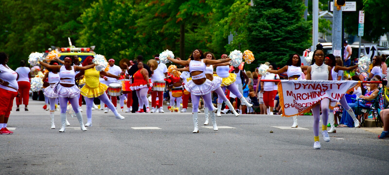 1Pipers Piping 2In Red 3Green Pipes 4Skilled Pipers 5Carrying the Rythym 6Dynasty Marching Unit Bringing the Shine 7Poms Up 8Caution Showtime 9Shining Poms 10Percussion Section 11Shades and Piercing 12Thin Sticks 13Toss 14Long Braids 15The Catch 16A Glance Aside 17Twirl Tricks 18In Hand 19Flags of the White Sabers Drum and Bugle Corps 20White Gloves Vehicles