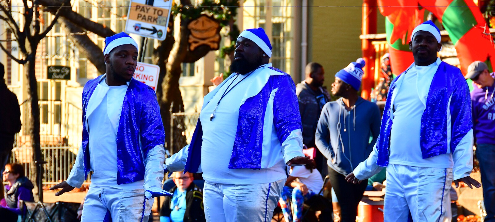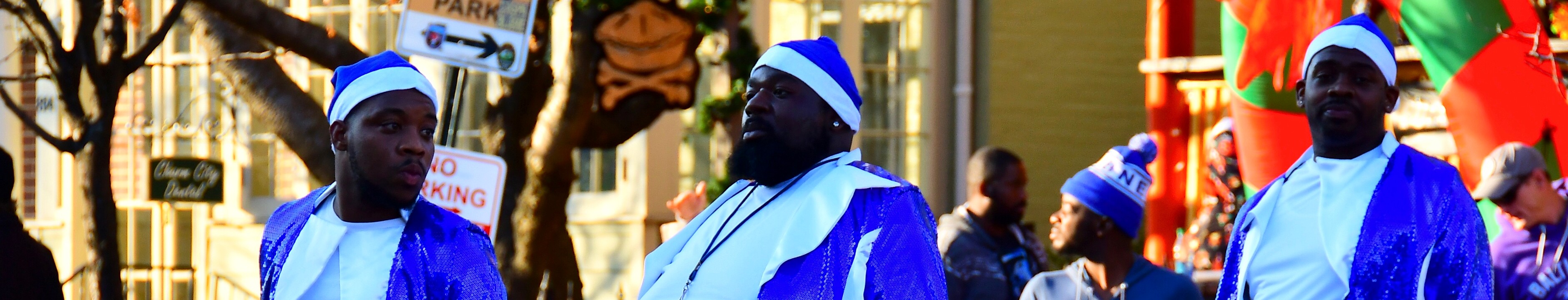 1Calvert Hall College Hight School Band on the Scene 2Green Flag Up 3Sax Section 4Wreaths and Lights 5Drum Reflect 6Hopping 7High Kicks 8Arm Muffs 9Smile in the Hood 10Arms Out Wide 11Merry 12Dulaney High Band Flag Squad Waving and Walking 13Black, Red, and White 14Mixed Brass 15Sousaphoners 16Drummers Marching Tall 17Dunbar High School Band and Cheerleaders Stepping In 18Tall White Feathers 19Yellow Capes 20Hegeman String Band In Front of a Reindeer Vehicles