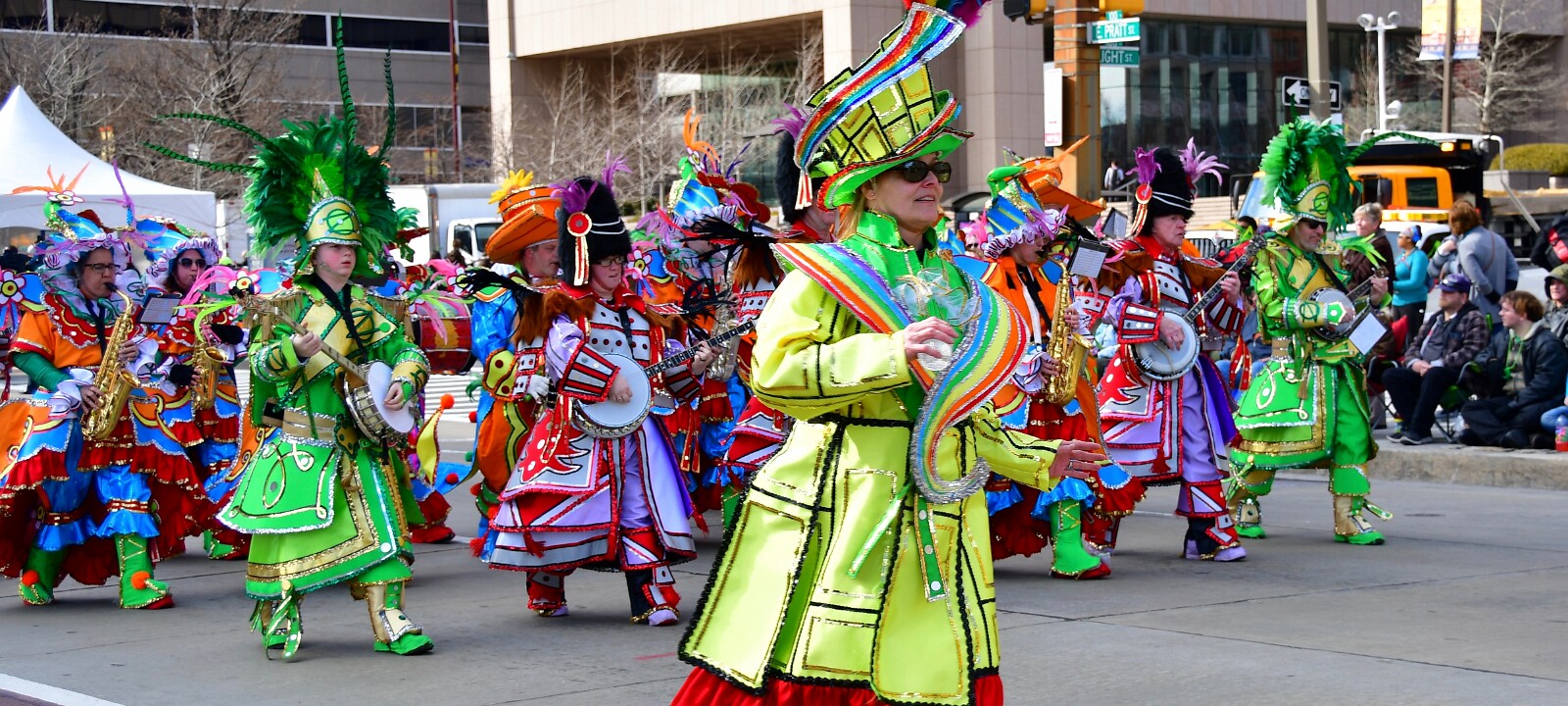 1Calvert Hall College High School Flag Squad 2Flags Angled Downward 3Red Yellow and Black 4Line of Saxophones 5Bright Brass 6Wave From the Leader of the Woodland String Band 7Jester Look 8The Catholic High School of Baltimore Cheerleaders on the Move 9Pom Up and Smile 10TCHS Cheerleader Saying Hello to the Crowd 11Reilly Raiders Making an Entrance 12Festive Green and White 13Silver Braiding 14Black Rimmed 15Leader of the Fire Brigade Pipes and Drums of Baltimore 16Solemn Face and Green Stache 17Marching in Unison 18Spinning Drum Pounders 19Clear Spring High School Blazer Band 20Scepter Raised and Whistle Blown Vehicles