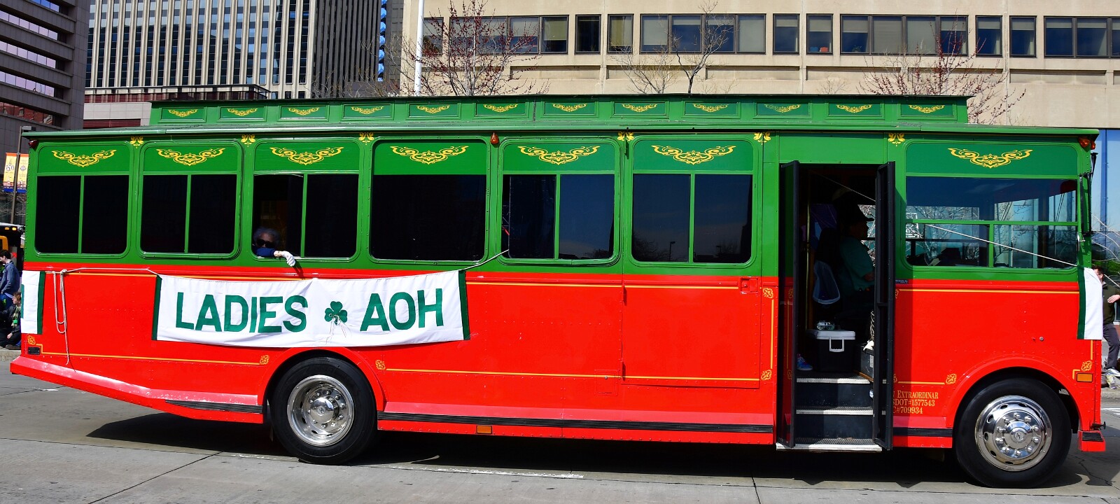 1Close Formation 2Kiss Me Cop 3Classic Big Black Police Car 4Red Light Blazing 5Special Services Unit 6Calvert Hall Cardinals Band Shuttle 7Dark Mustang GT Convertible 8Ravens Pride 9Purple Lightning 10Peeking From the Door 11Ladies AOH Trolley 12Thick Green Buick Eight Rolling Through Town 13Old Engine on the Roll 14Guarding the Gold 15Rear Shots 16BCFD Emerald Society on the Ravens Club Bus 17Giving Out Beads 18Poe the Raven Eyeing the Crowd 19Feather Fist Up 20Green Shamrock Marching Bands and Performers